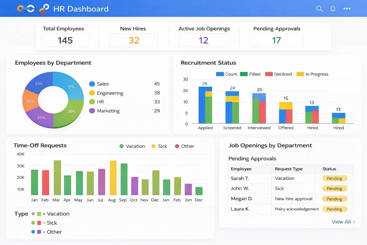Track hiring funnel metrics in real time with automated dashboards.