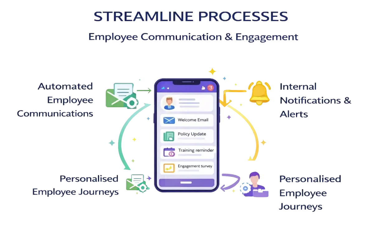 Automated yet personalised employee communications improve engagement, reduce internal friction, and strengthen organisational alignment.