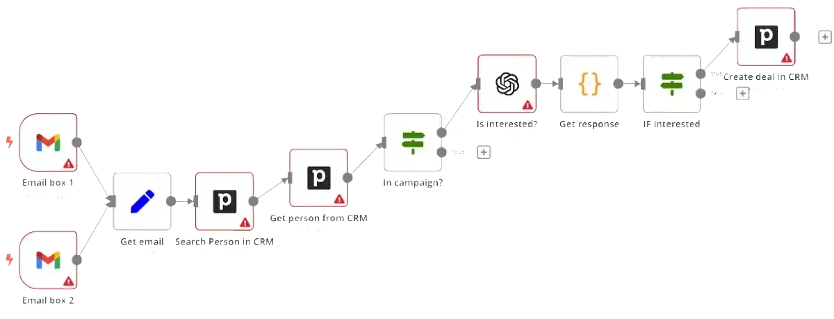 Improve sales efficiency by automating lead management, pipeline movement, and data updates. n8n enables logic-driven sales workflows that scale. Our approach: